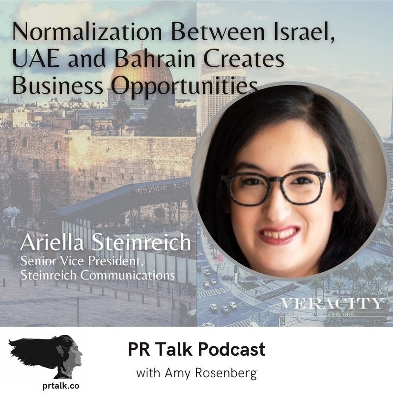 On this episode of the PR Talk Podcast, host Amy Rosenberg explores what this new agreement means for Israeli and Arab-owned businesses, and the marketers and PR pros supporting them. Amy’s joined by Ariella Steinreich, a Senior Vice President and head of the Israel-U.A.E. specialty group for Steinreich Communications — a global PR firm headquartered in New York.
