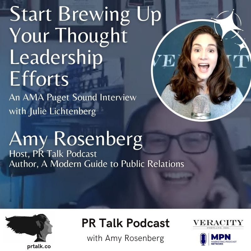 Amy Rosenberg had the opportunity to interview on AMA Puget Sound’s Coffee Talk Series with host Julie Lichtenberg. Amy shared her knowledge of thought leadership and why many organizations are using thought leadership in their PR and Marketing strategies.