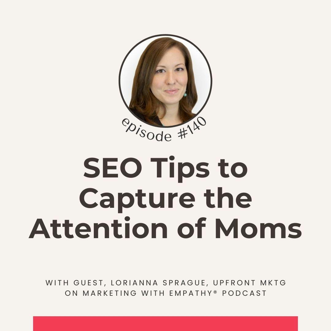 EP 140. SEO techniques to help your brand better reach and engage more mom customers. Guest, Lorianna Sprague is an SEO expert and founder and CEO of Upfront Mktg, and joins host, Sarah Panus, to share tips to think about in your brand’s SEO practices to better capture the attention of moms. Moms control a significant portion of household purchases, making them a critical audience for many brands. Tune in to explore how your brand can leverage SEO to reach these influential consumers, discussing strategies like keyword optimization, local SEO, importance of mobile with moms, and creating authentic, valuable content, so you can grow your brand with empathy.